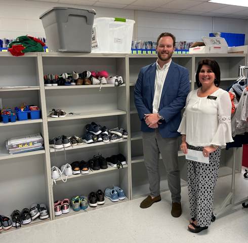 Photo: J Larry Newton School Clothing Closet – (L-R) Will Wiggins, Director of Operations and Executive Administrator of Baldwin Bone & Joint and Tonya Harrelson, Principal of J. Larry Newton School