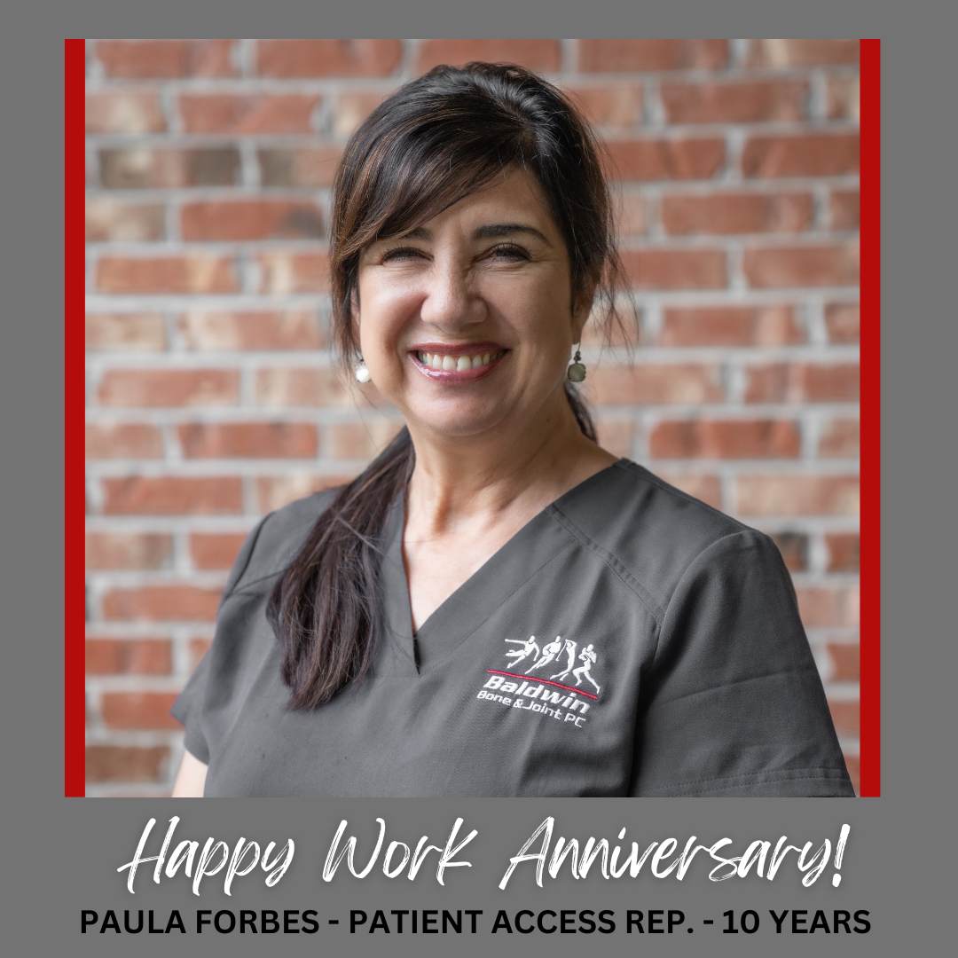 Congratulations to Paula Forbes on celebrating 10 years as a Patient Access Representative with Baldwin Bone & Joint!
